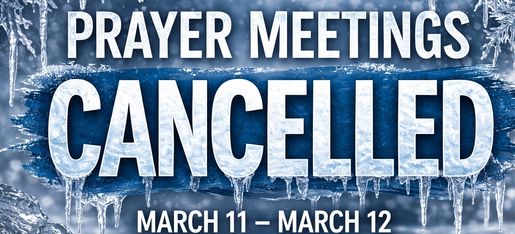 Due to an Environment Canada warning for freezing rain and a possible ice storm beginning Wednesday and continuing into Thursday, all Prayer Meetings this week are cancelled.